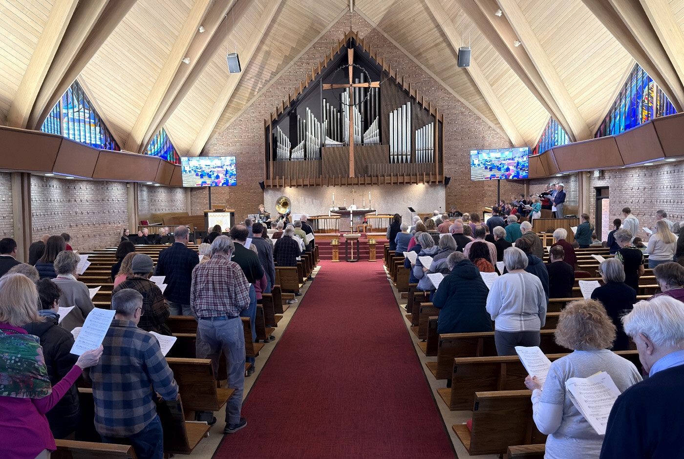 God's grace and love shown through Jesus Christ are the heart of our worship. We also hold dear families being able to worship together, so you and your squirmy little one will be fully welcomed here.